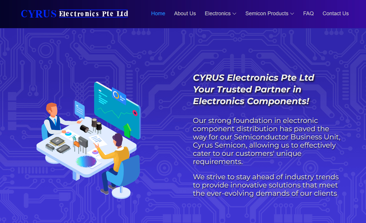 Web site designed for CYRUS Electronics Pte Ltd . A modern Web site designed with bootstrap components and enabled for responsive cross-platform viewing.